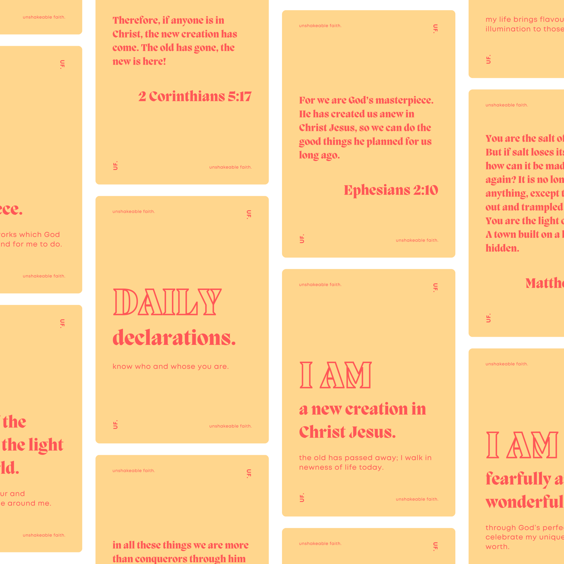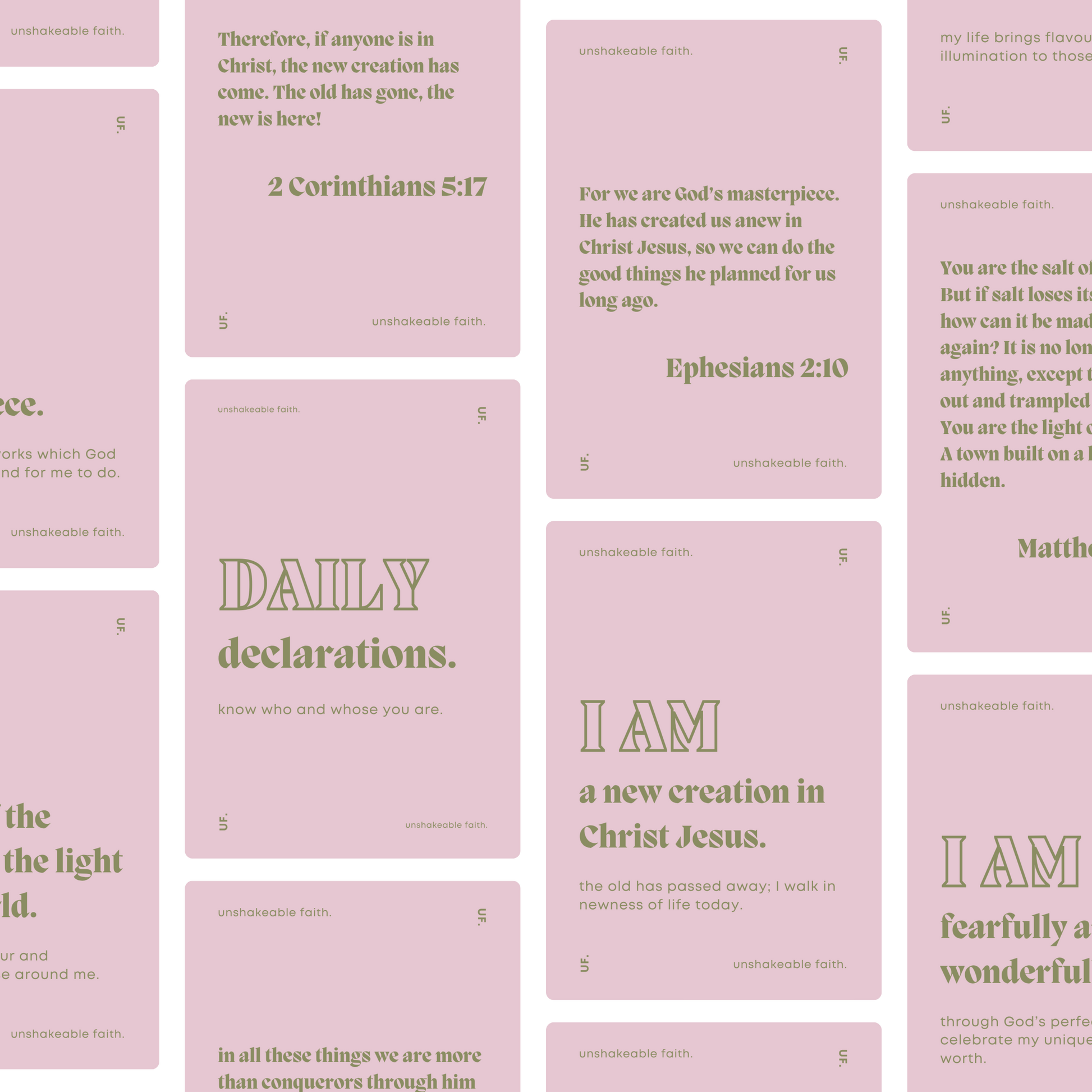 keep them on your bedside table, mirror, desk, or prayer space, wherever you’ll see them most. let each declaration draw you closer to the truth of who you are in Him, one day at a time.